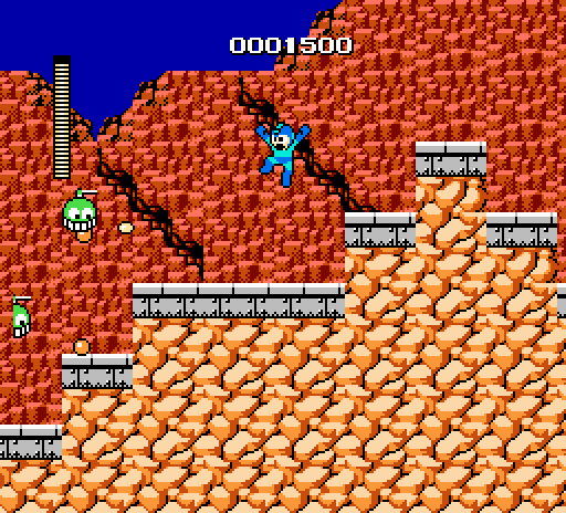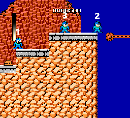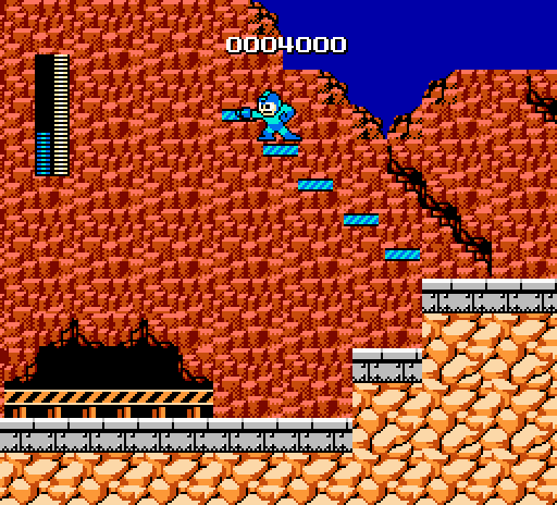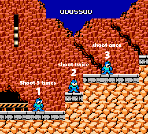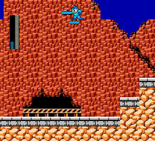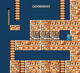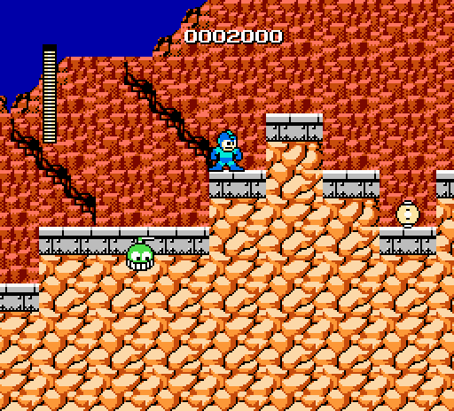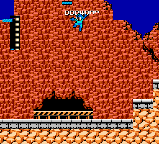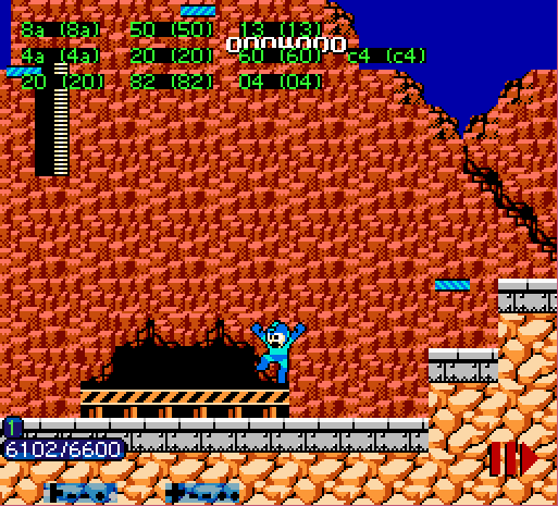 Press down+shoot for one frame to get mega man stuck on the ladder.